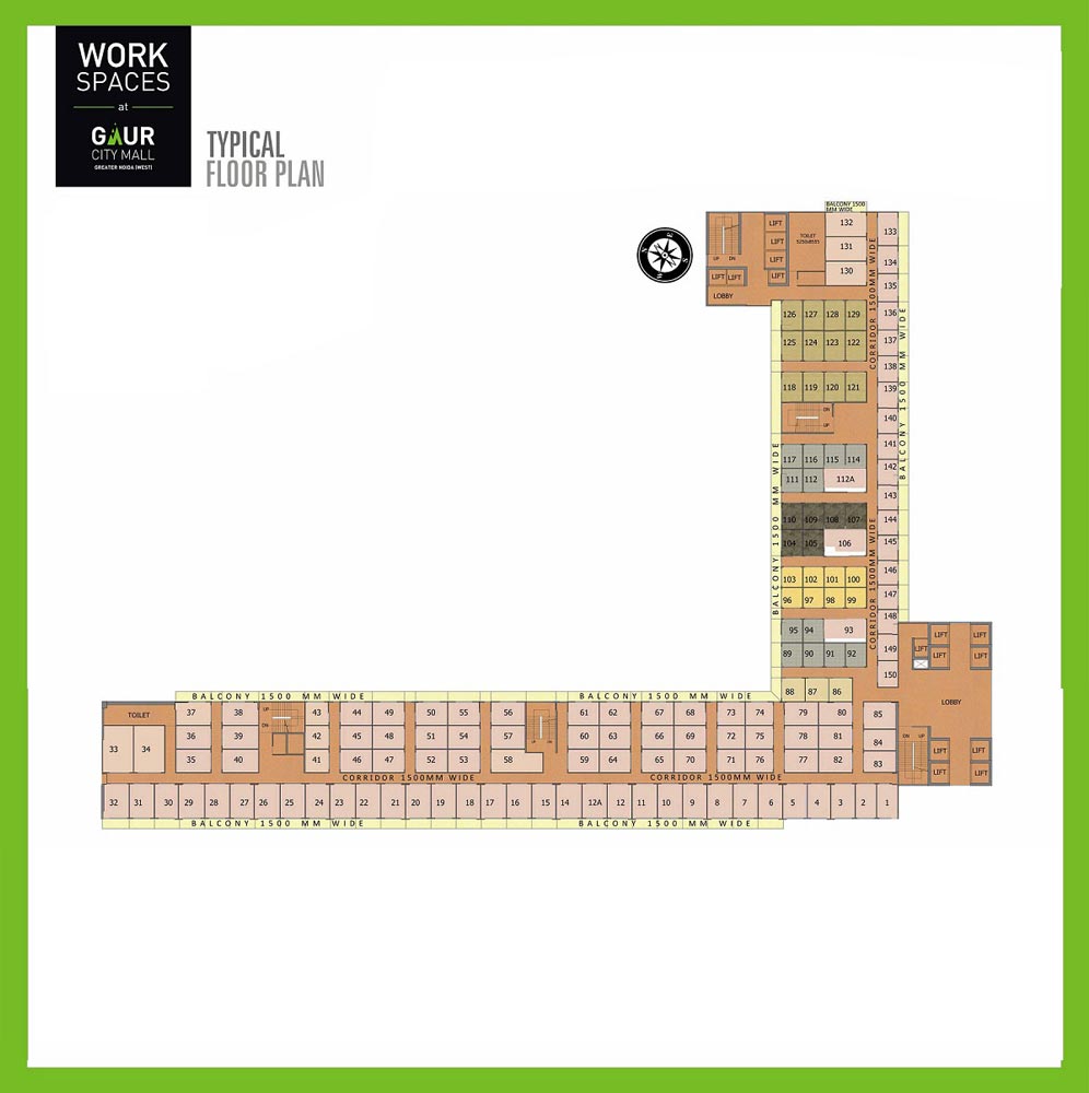 Gaur Work Spaces in Noida Extension. It is first ever 100% commercial office spaces in Greater Noida (West). These work spaces are located in Gaur City Mall which has multiplexes, 3 large departmental stores, hypermarket, fashion stores, high end brands, entertainment area for kids and adults and multi cuisine restaurants. So, now you can work and enjoy and relax at the same place. Gaur Work Spaces are small in sizes which will suits every type of business professionals. The size of work spaces ranges from 145 sqft to 1000 sqft.